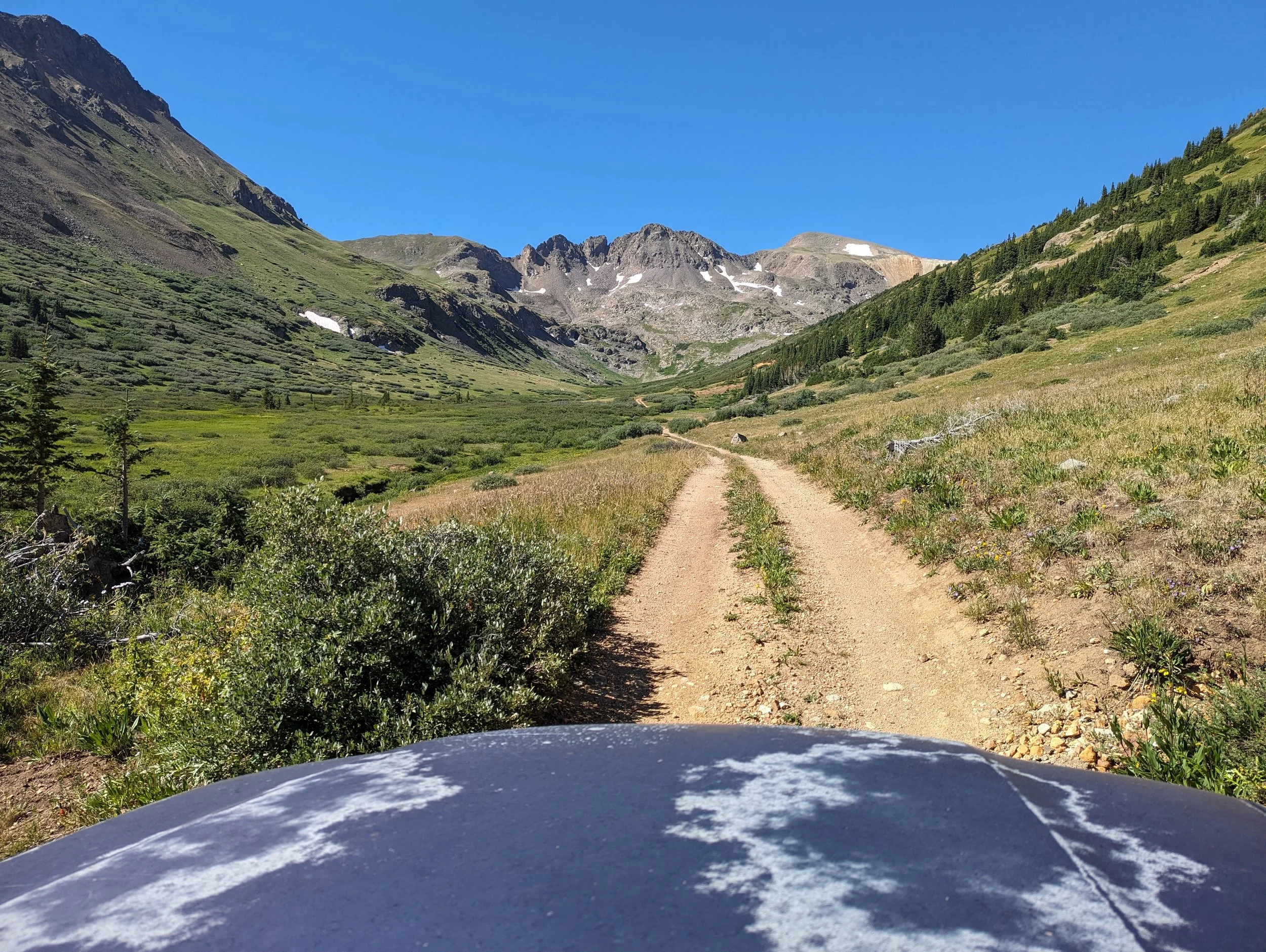 We started moving early. Since access to the trailhead necessitated high-clearance 4-wheel-drive, we found a good spot to stash my van and head up in Carter’s truck. We would be starting from the Matterhorn Trailhead, which is not the typical trailhead for Uncompahgre Peak, but we were hoping to tackle Wetterhorn Peak on the way. The trail to and from Uncompahgre alone would be a half-marathon, so we decided we’d feel it out.
